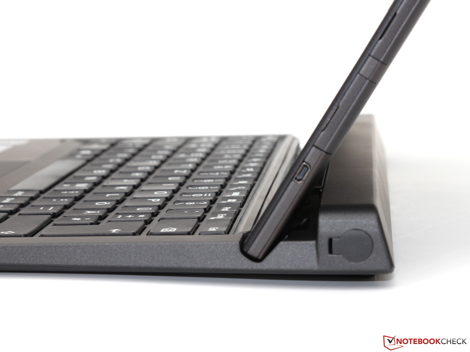 节能的Core M-5Y71不仅在散热需求上让人惊喜(它仅需被动散热),同时它优秀的性能也可以满足所有办公和多媒体应用的需要。在功效上的提升对于电池续航来说也是一件好事,它仅凭内置的35Wh电池就可以轻松实现6小时的续航时间。搭配可选的Ultrabook Pro键盘底座它还可以更加持久,不过这会为它增加200欧元的成本(相比我们评测的非专业版键盘),不过相对的你可以得到一块附加电池,指点杆,和可旋转屏幕转轴。