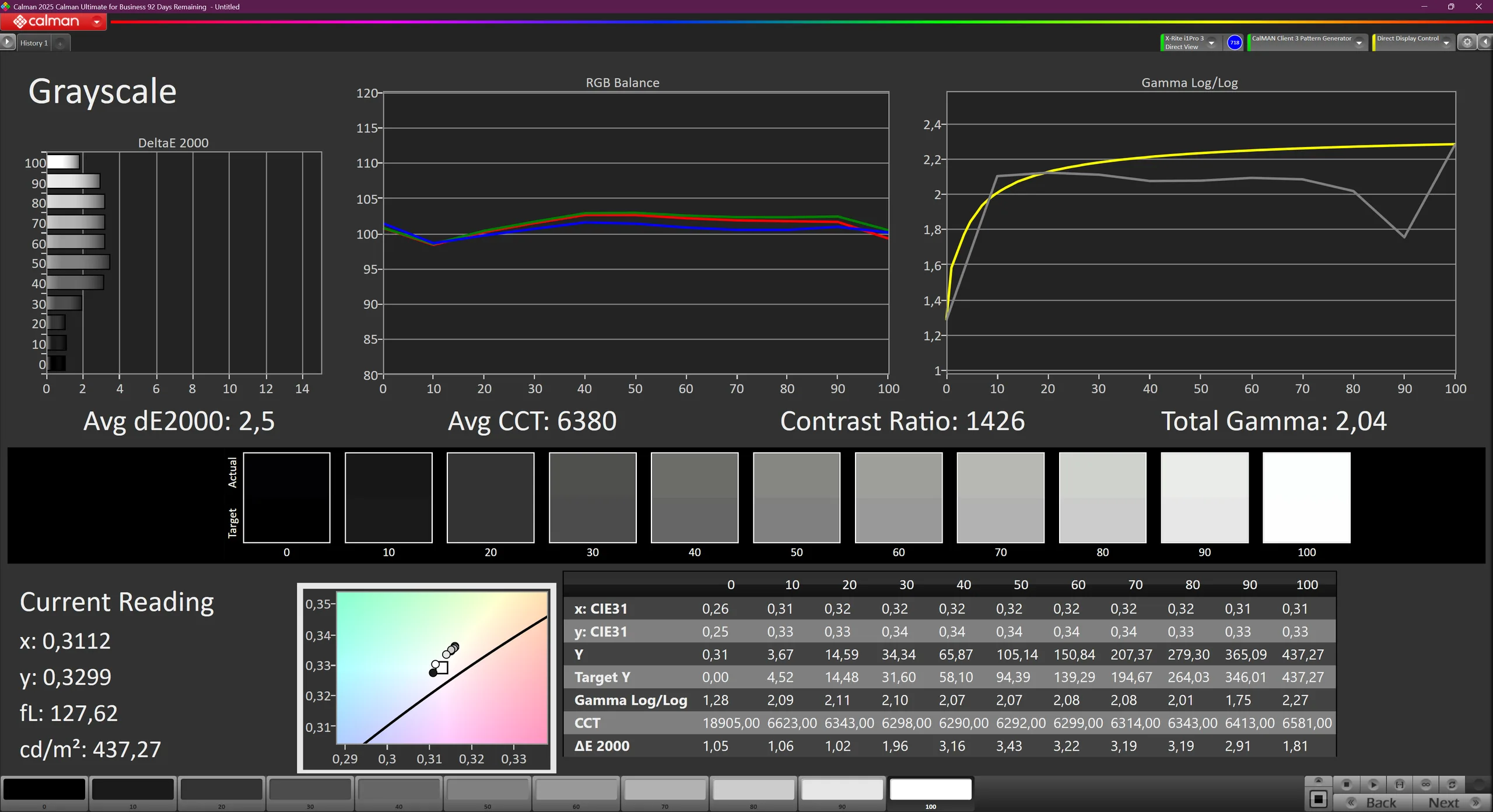 ΔE Greyscale Calman: 2.5 | ∀{0.09-98 Ø5}