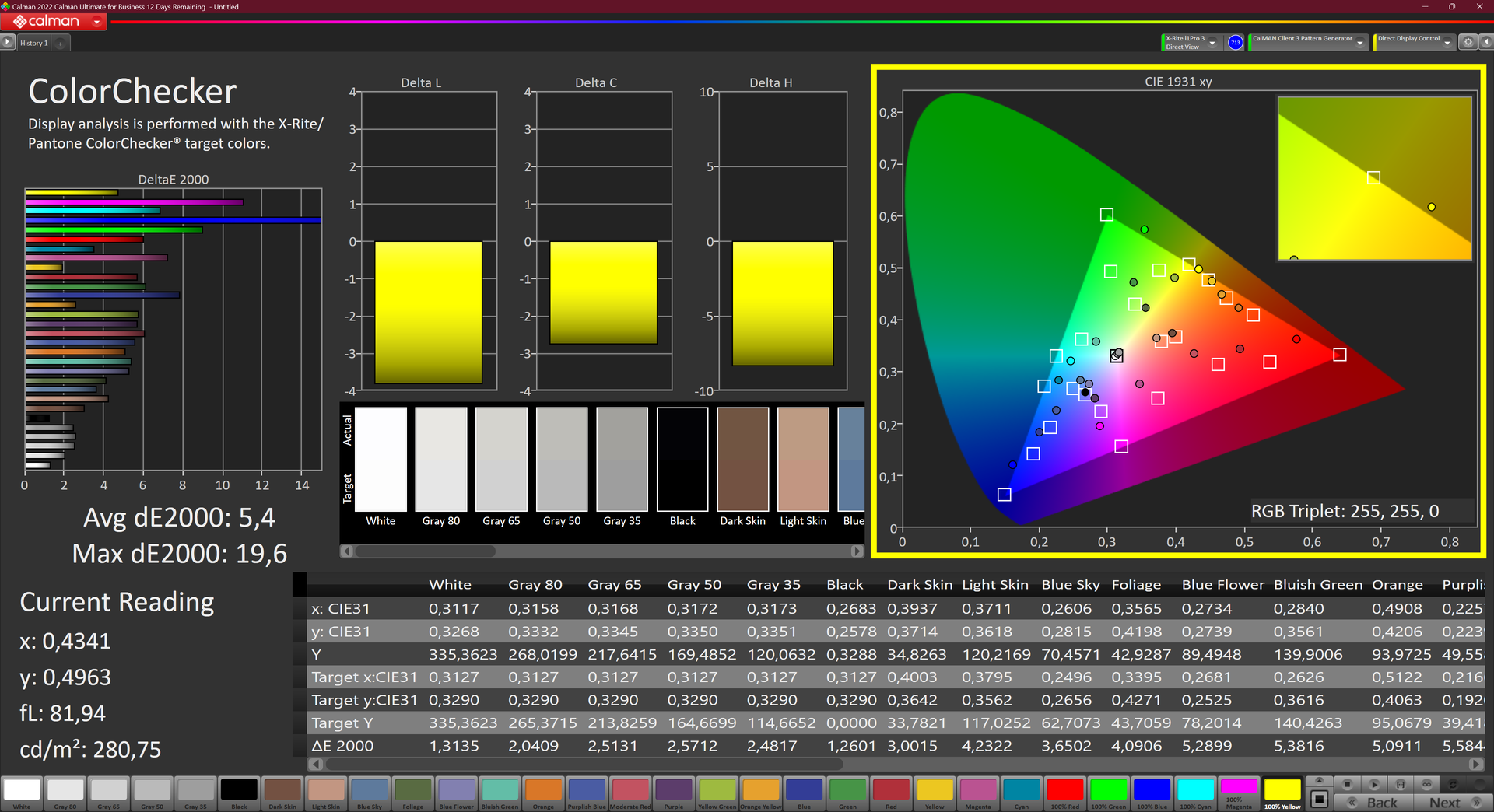 ΔE ColorChecker Calman: 5.4 | ∀{0.5-29.43 Ø4.78}