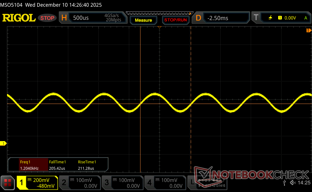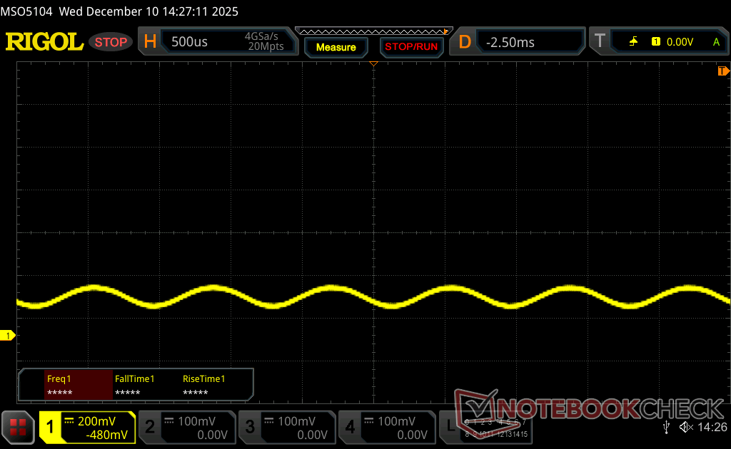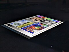 从主观上看,我们测试设备上的哑光串联 OLED 屏幕比传统的亮光屏幕更有颗粒感,尤其是在显示全白图像时。尽管如此,它在 HDR 播放方面仍然表现出色,因为它的亮度非常高,尤其是对于 OLED 面板而言。我们使用 X-Rite 色差计进行的独立测量显示,SDR 模式下的最大亮度为 566 尼特,HDR 模式下的最大亮度为 1430 尼特,分别接近广告宣传的 600 尼特和 1500 尼特。不过,如果触摸屏和 HDR 功能并不重要,那么 2400p 选项可能因其更密集的像素数而更有价值。