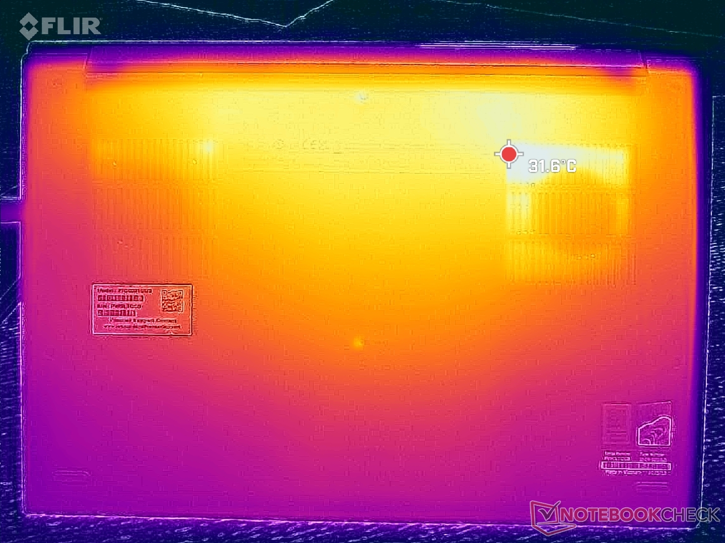 (+) The palmrests and touchpad are cooler than skin temperature with a maximum of 23.2 °C / 73.8 F and are therefore cool to the touch.
