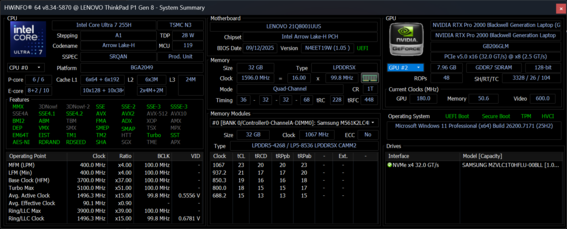 | Lenovo ThinkPad P1 Gen 8 Intel Core Ultra 7 255H ⎘ NVIDIA RTX PRO 2000 Blackwell Generation Laptop ⎘ 32 GB Memory, 1024 GB SSD | Amazon: List Price: 2000 USD | 1.9 kg | 20.6 mm | 16.00" 3200x2000 236 PPI Tandem OLED | |