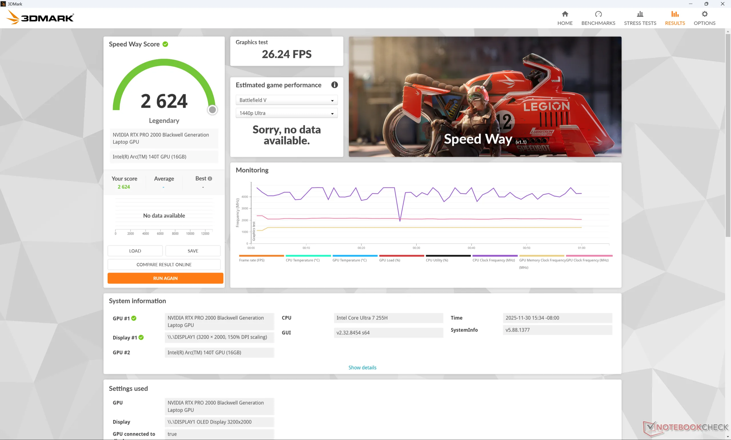 我们的测试机为中端配置,配备酷睿至尊 7 255H CPU、75 W RTX Pro 2000 Blackwell GPU 和 3.2K 同步 OLED 触摸屏,售价约为 2220 美元。较低端的 SKU 从酷睿 Ultra 5 235H 开始,只集成了 Arc 140T 图形处理器和标准的 1200p60 IPS 显示屏,而较高端的 SKU 则配备了酷睿 Ultra 9 285H 和 4K IPS 显示屏。没有 RTX Pro 2000 Blackwell 以上的显卡可供选择。