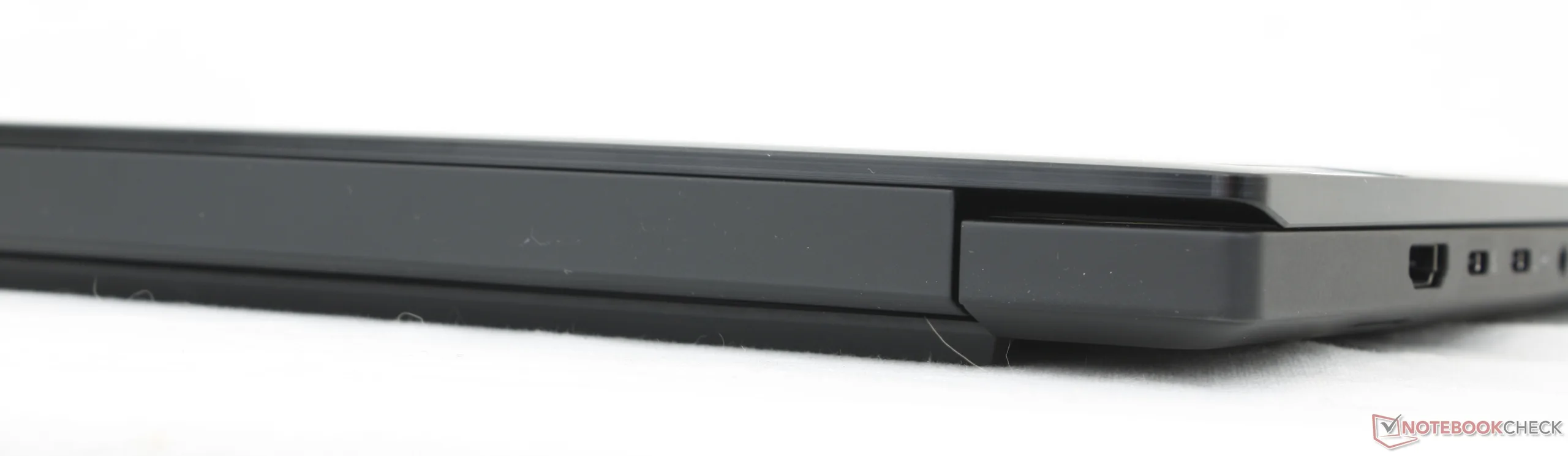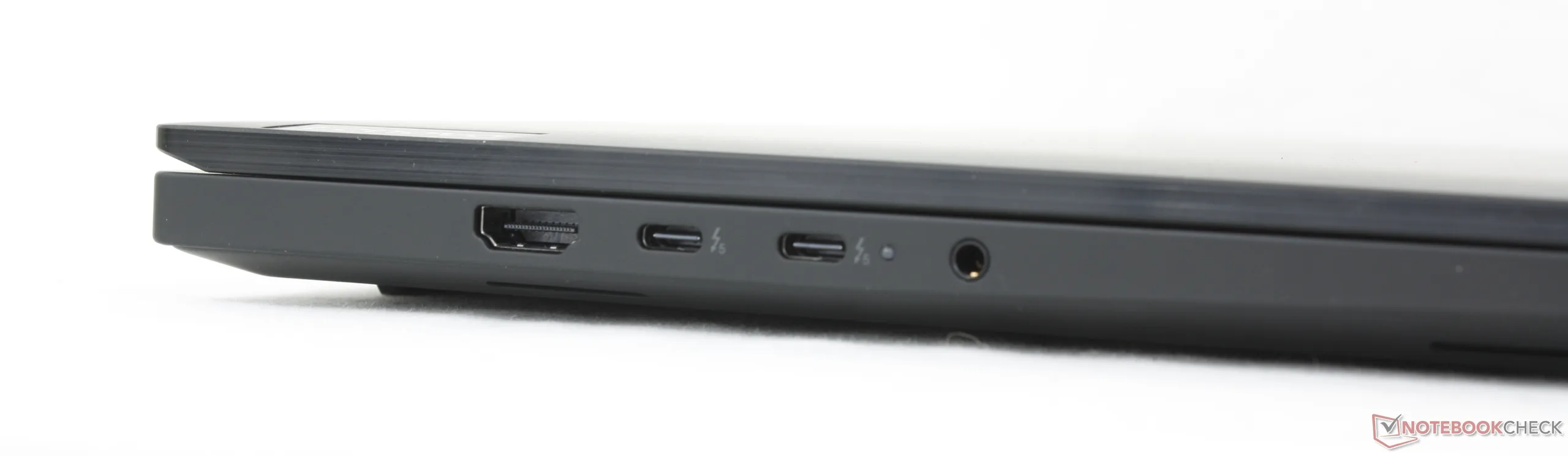 虽然机身和尺寸与以前相同,但与 7 代相比,8 代机型引入了几个值得注意的端口变化。现在支持 Thunderbolt 5,同时放弃了专有的交流适配器端口,仅使用 USB-C 供电。因此,三个 USB-C 端口中将始终有一个用于交流适配器供电,而去年的机型则不是这样。