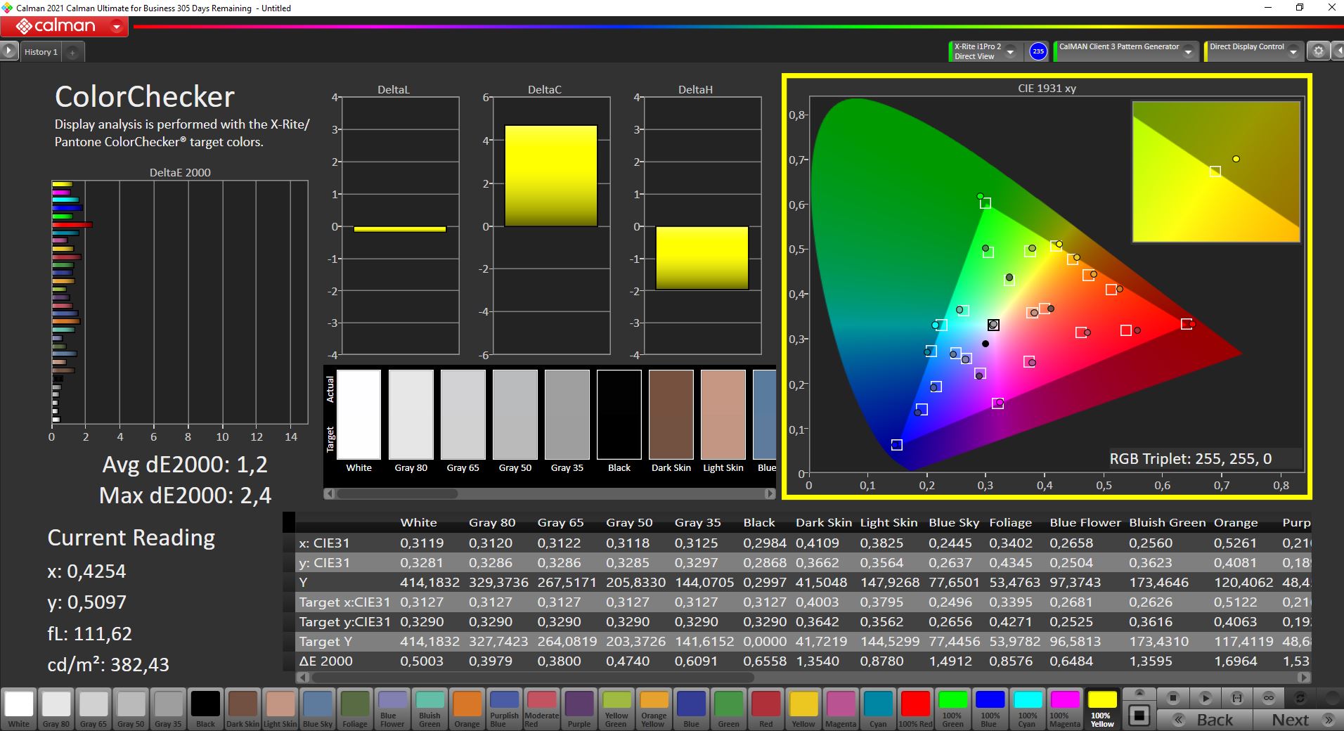 | Colorchecker dE 2000 * | 2.6 | 2.5 4% | 2.2 15% | 2.2 15% |