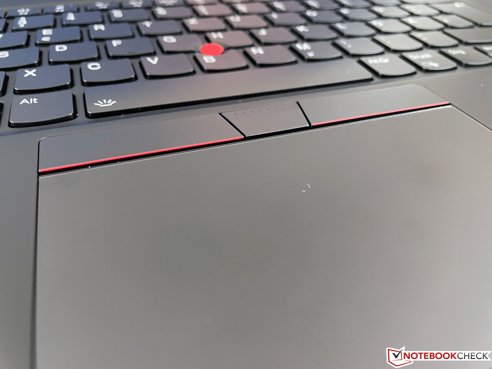 ClickPad(11.5 x 6.9厘米)提供了良好的滑行能力,并支持微软的Precision 标准,因此包括手势在内的标准操作效果良好。点击机制也给人留下了良好和高质量的印象,点击的声音很闷。与旧的ThinkPad P1,TrackPoint键与X1 Carbon没有相似之处,它们是完全平的。这也意味着行程减少,主观印象更差。咔嚓声也相当响亮,而且还有点咔嚓声。TrackPoint本身运作良好,我们没有遇到任何光标漂移的情况。