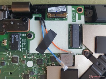 右侧的功能包括两个USB-A 3.2 Gen1(Always On)端口、HDMI 2.0、GBit以太网和一个全尺寸的SD读卡器,这些功能在P15s等纯商务ThinkPads中已经不再提供。带有WWAN的型号在设备背面有一个SIM卡插槽,如果没有配置WWAN,它可以作为一个μSD卡插槽。