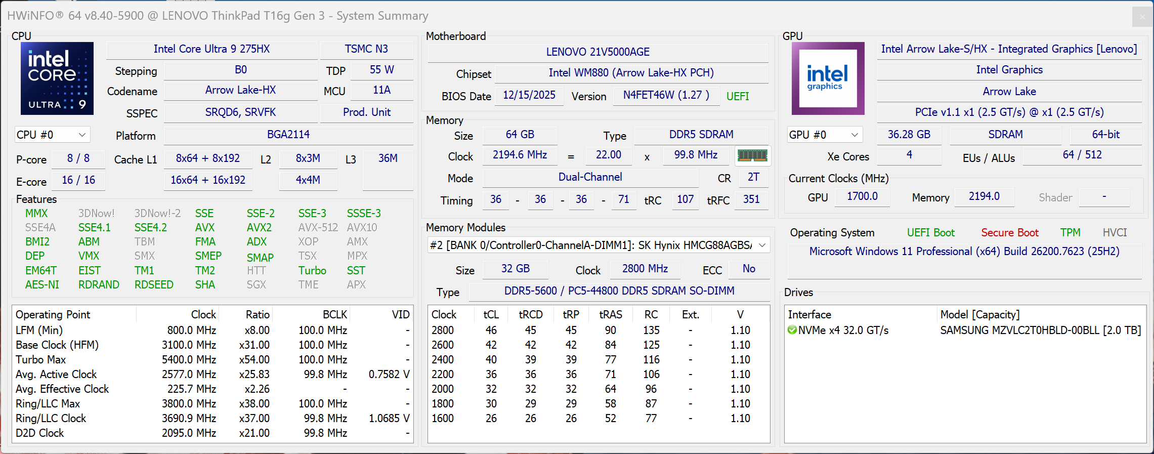 | Lenovo ThinkPad T16g Gen 3 RTX 5080 (Angelbird AV Pro V60) | |