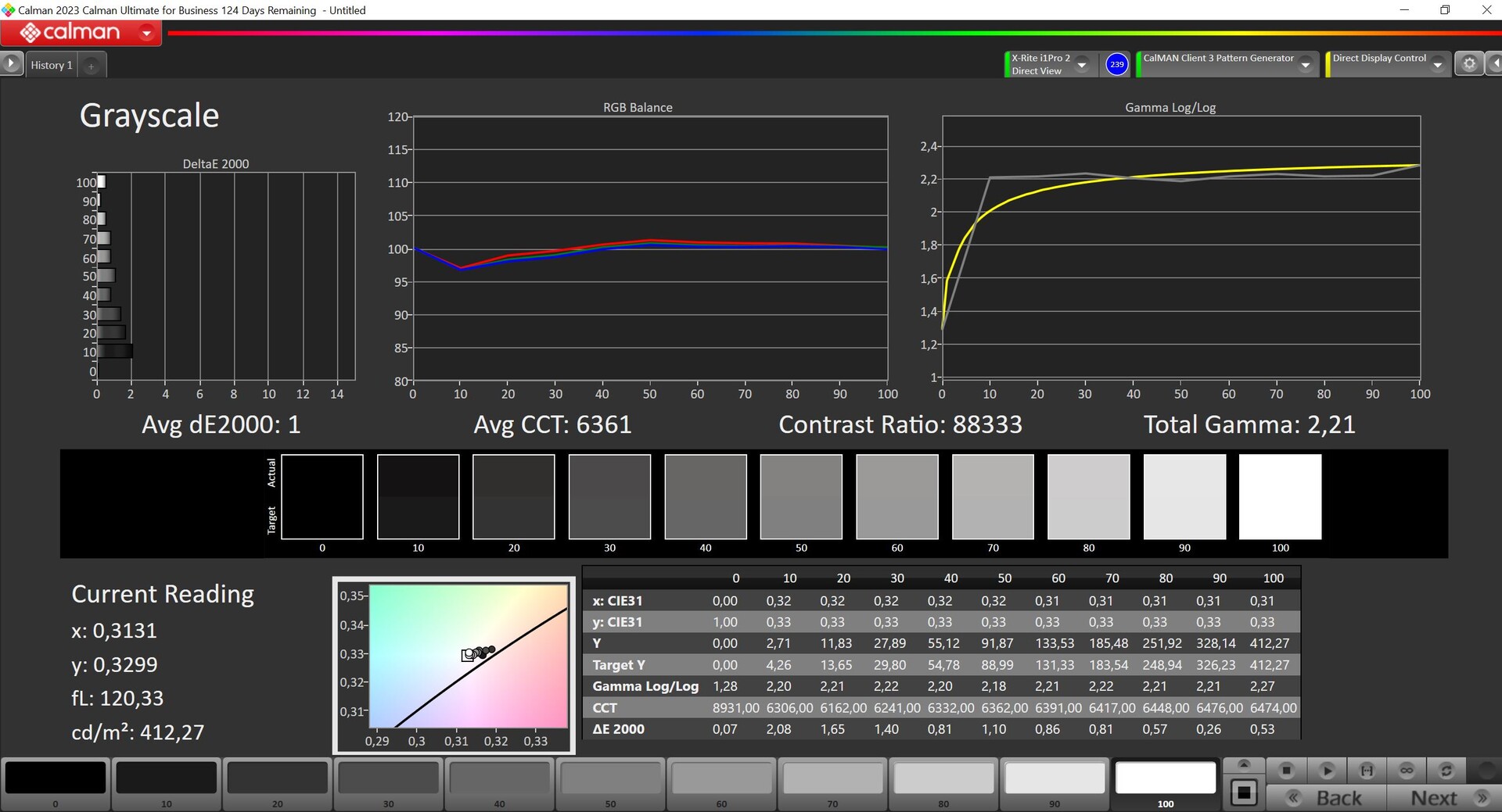 ΔE Greyscale Calman: 1 | ∀{0.09-98 Ø5}