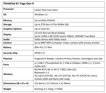 从显示屏开始,联想解释说,ThinkPad ThinkPad X1 2-in-1 Gen 9 最高可配备 14 英寸 OLED 触摸显示屏,刷新率为 120 Hz,分辨率为 2.8K,亮度为 400 尼特,并通过了 HDR500 True Black 认证。此外,还有一个 800 万像素 MIPI Computer Vision 网络摄像头,带有物理私人快门。遗憾的是,我们没有关于其他显示屏配置的任何信息。