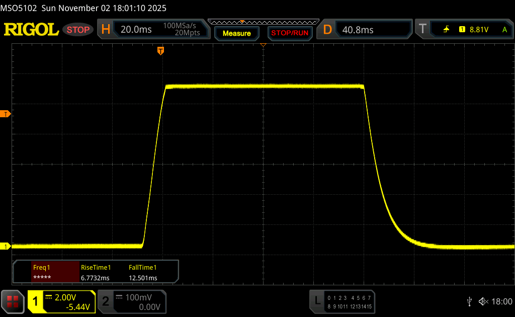 | 19.3 ms ... rise ↗ and fall ↘ combined | ↗ 6.8 ms rise | |
