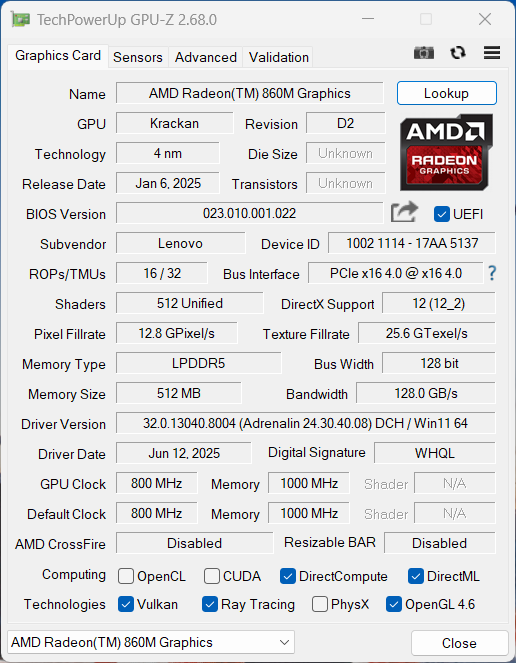 根据联想的官方规格,ThinkPad X13 G6 最高可配备 32 GB LPDDR5x-8000 内存,但不能升级。