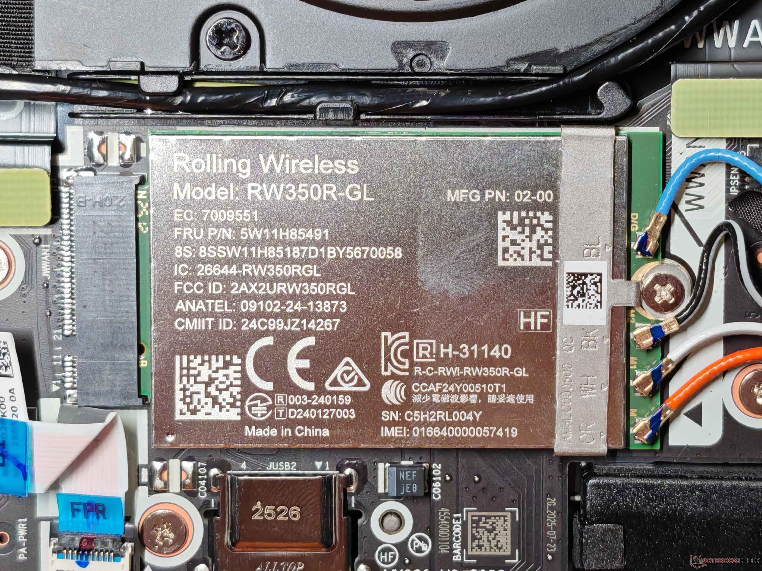 在端口方面,现在只有一个 USB-A 接口位于右侧,而包括 Thunderbolt 4 在内的两个 USB-C 端口位于左侧。WLAN 模块支持 Wi-Fi 7,传输速率非常高且稳定。500 万像素摄像头(包括红外摄像头)的成像质量尚可,采用机械快门。