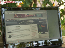 During outdoor use, the notebook benefits from its matte display. In the shade, the screen remains legible without effort. Under direct sunlight, however, the Travelmate B113 is stretched beyond its limits. A brightness above of 250 cd/m² would be desirable.