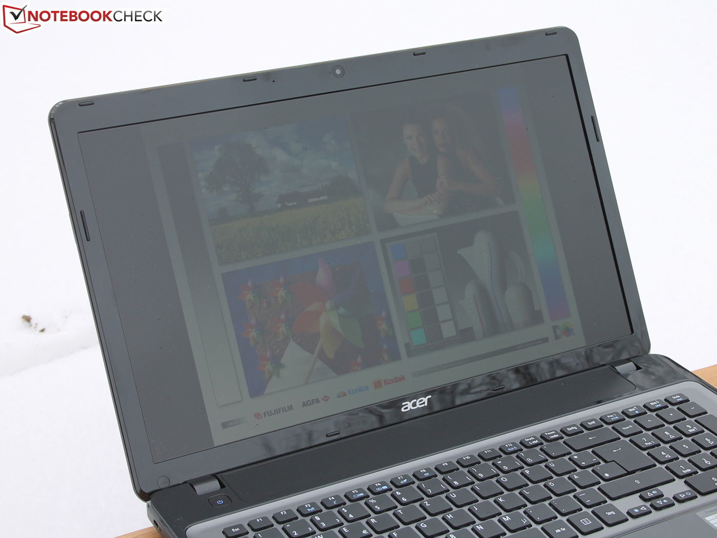 The brightness of the TravelMate P273 during battery use is not sufficient for outdoor use. In addition, the glossy display frame reflects under unfavorable light conditions. Working with the notebook is only possible in the shade without direct sunlight, also if power is available, e.g. on a terrace with sufficient brightness.