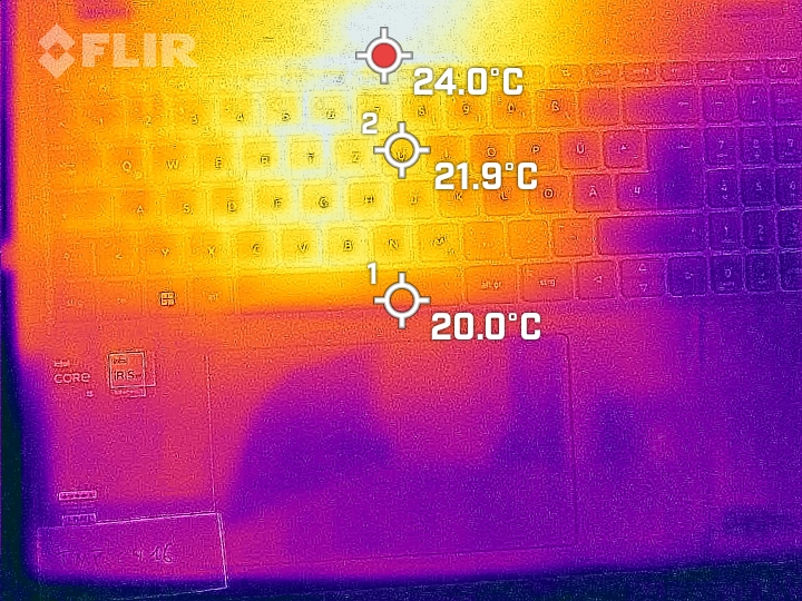(+) The palmrests and touchpad are cooler than skin temperature with a maximum of 29.8 °C / 85.6 F and are therefore cool to the touch.