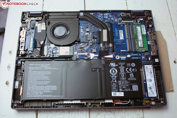 我们看到,这款笔记本电脑的优势在于 8 至 10.5 小时的良好电池续航时间,以及坚固耐用的机箱,大部分时间都能保持低温。低发热量和低功耗是酷睿 i5 低于其性能的结果,但在使用网络应用程序和 Excel 电子表格时,几乎没有人会注意到这一点。更重要的是实际问题,例如可以清洁风扇或升级工作内存。在这方面,宏碁提供了一个很好的范例,它提供了一个可以吹出强制风的开口来清洁风扇,或者提供了一个方便拆卸底板的开口。