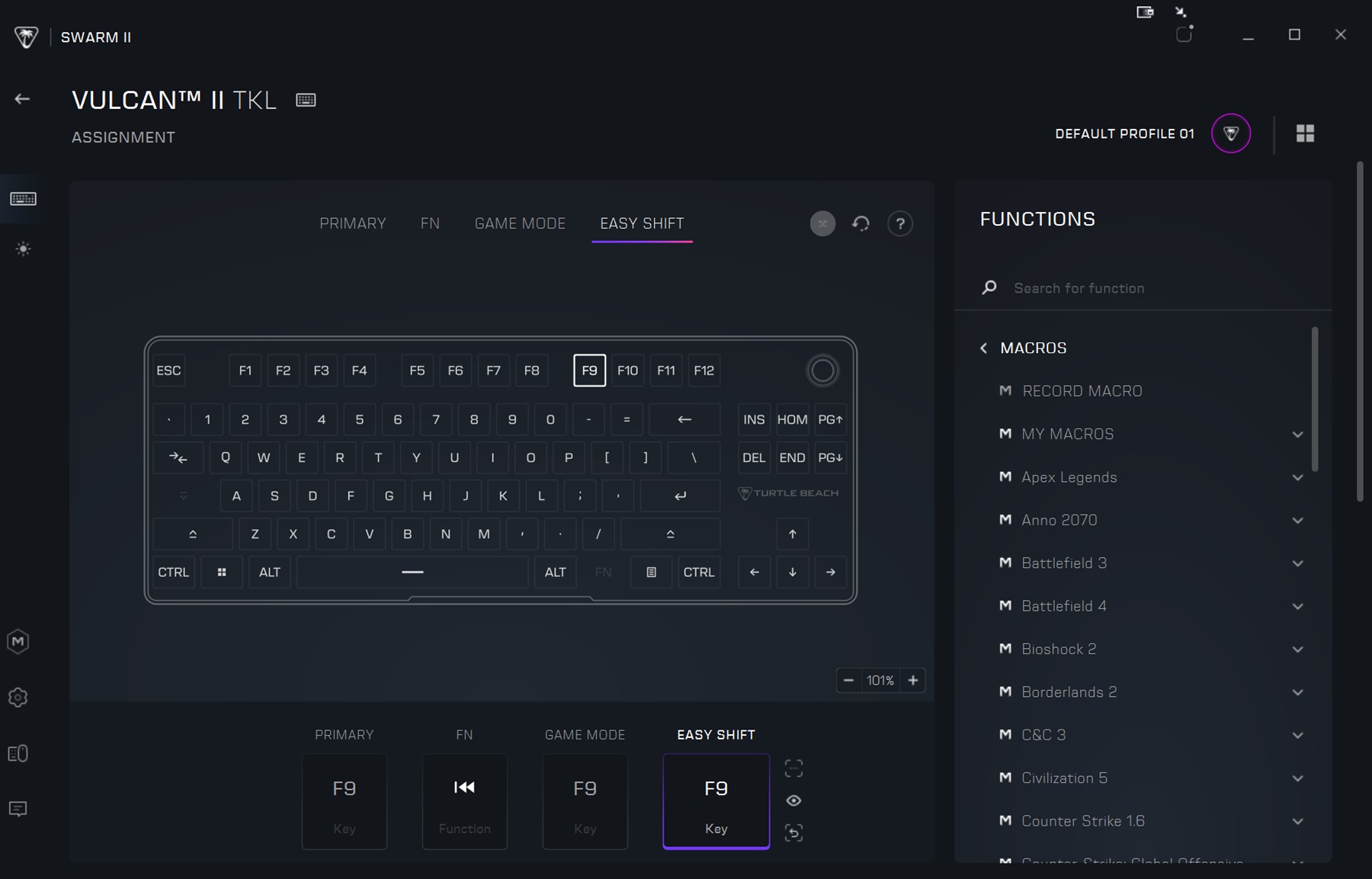 Swarm II 软件试图统一旧的 Roccat 时代的设备和较新的 Turtle Beach 产品。这种过渡并不总是很顺利,最初在应用程序与键盘的通信方面就出现了一些问题。重新安装后,问题迎刃而解,而且在此后的几周里,它还能可靠地更改设置。