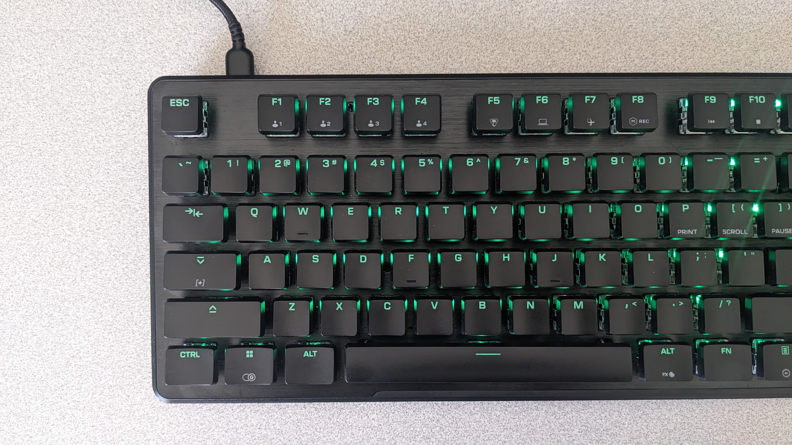 忠实于 "咔哒 "声绿色开关的游戏玩家不会在 Turtle Beach 键盘上体验到同样清晰的反馈。另一方面,在长时间游戏或写作后,缺乏阻力也是有好处的。事实证明,无论在什么情况下,这款键盘的性能都非常可靠。