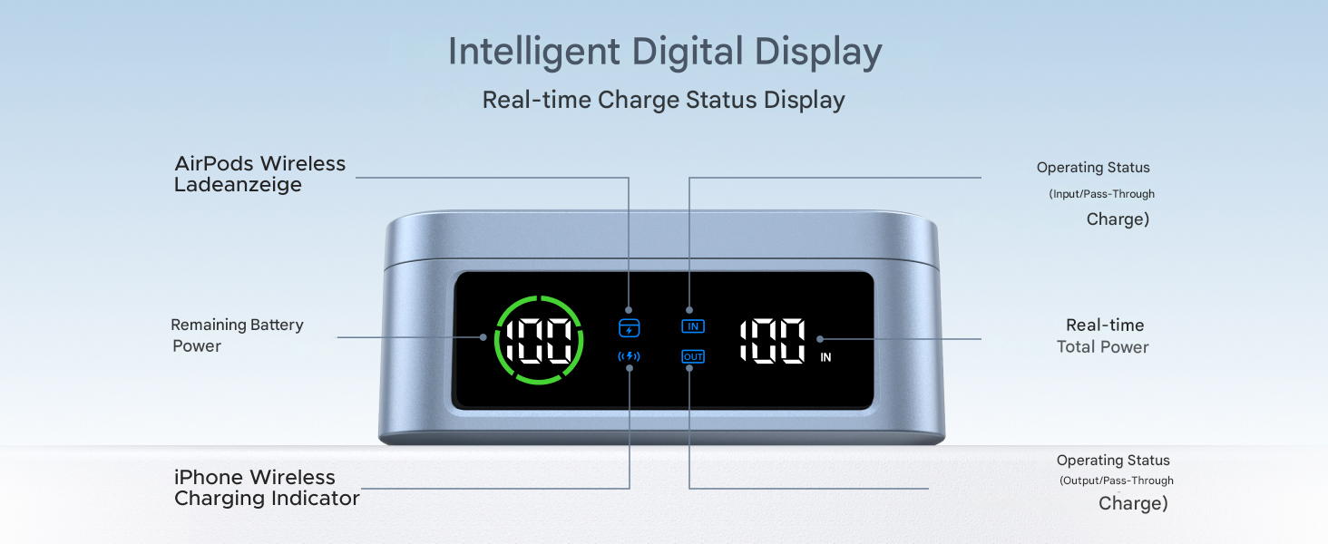 它的内置显示屏是另一个亮点,屏幕可以显示关键的充电信息,比如可折叠磁性无线支架是否提供电量。其他值得一提的亮点还包括安全功能、时尚设计和广泛的兼容性。目前还没有关于 20K MagFlowQi2 25W 何时在欧盟以外地区上市的消息。何时在欧盟以外地区上市。