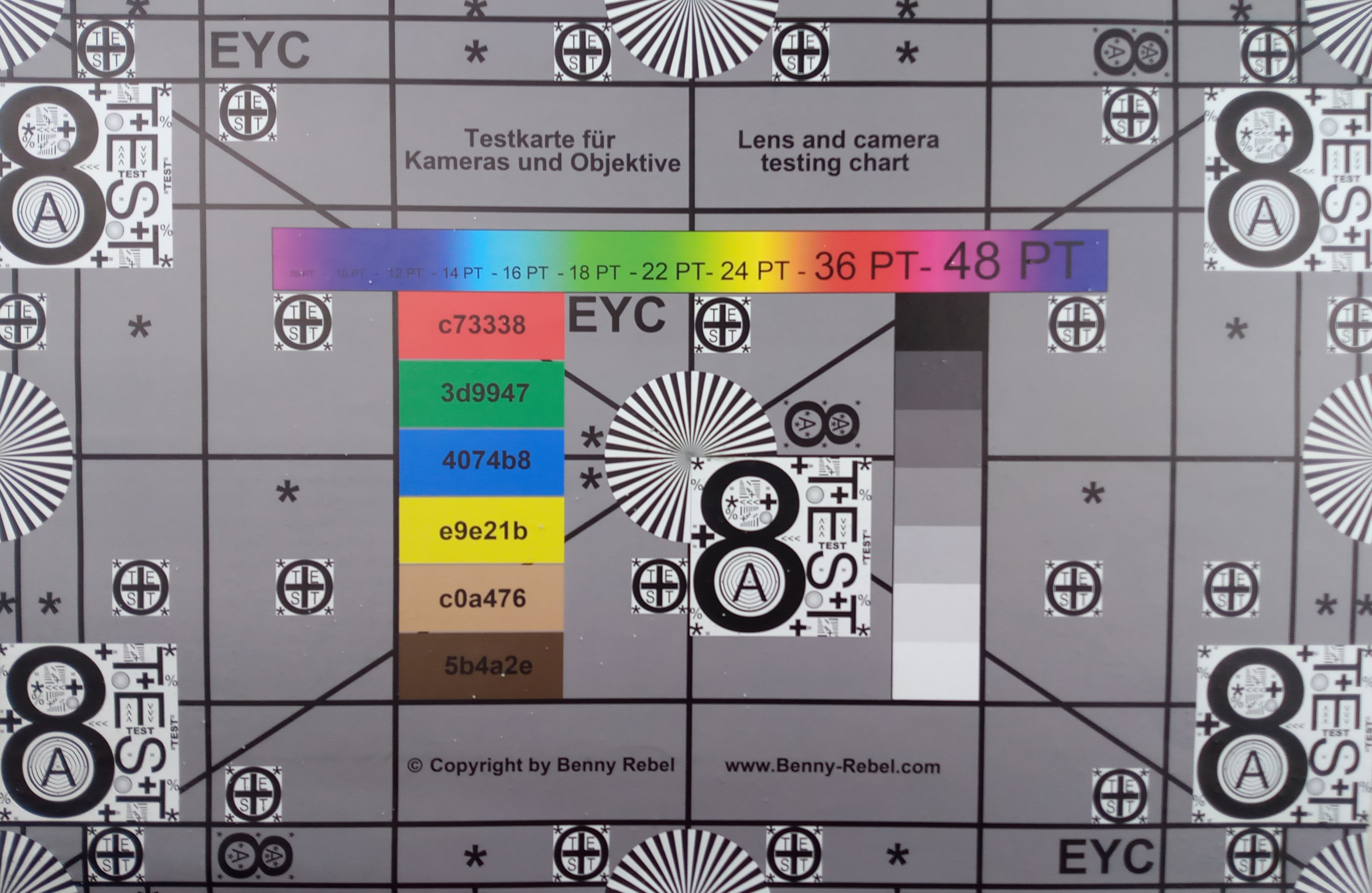 | Colorchecker dE 2000 * | 4.77 | 5.4 -13% | 6.1 -28% | 4.39 8% |