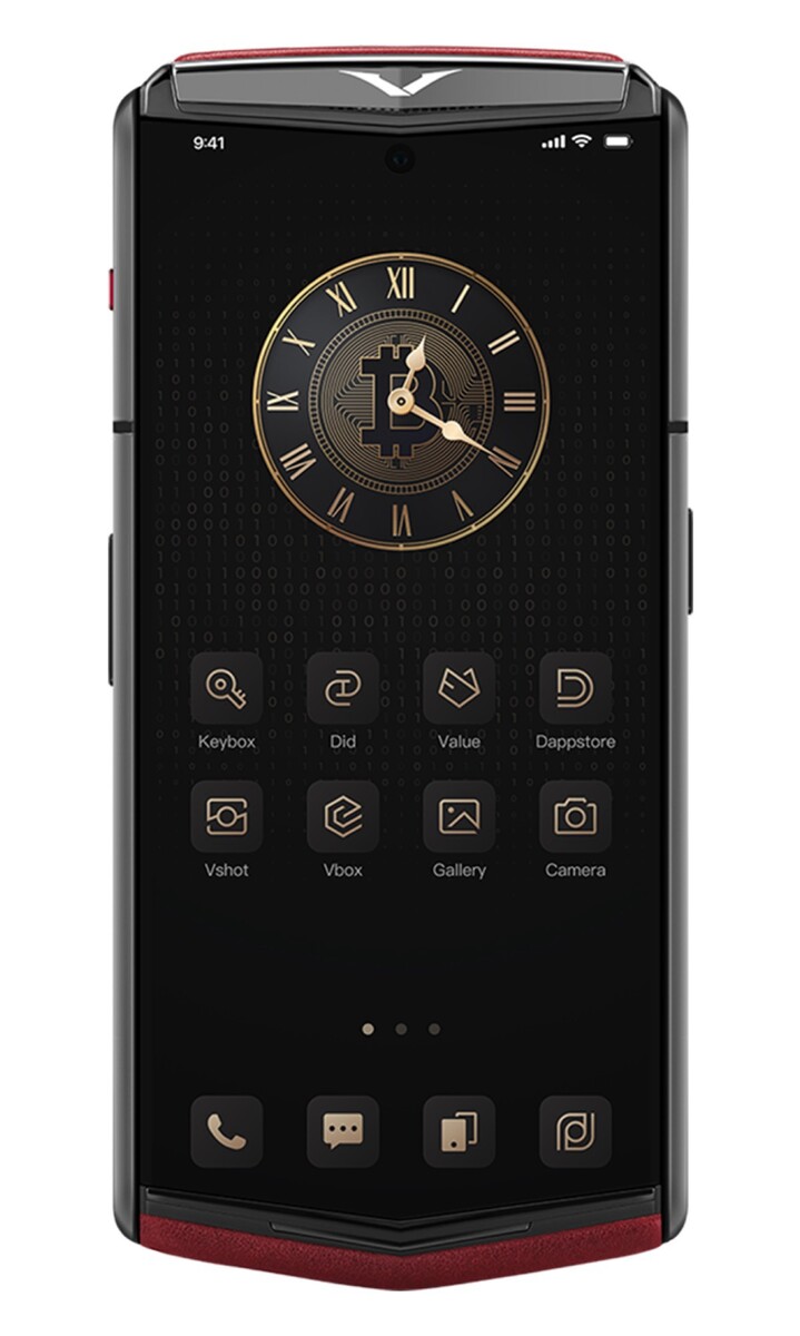 虽然到目前为止还没有透露更多的技术规格,但图片已经显示出 Vertu 正在关注加密货币和区块链技术。这款智能手机显然配备了一个区块链应用程序商店和一个比特币主题。照相机应用程序应该可以通过人工智能修改照片,例如可以去除人像中的眼镜。不过,手机左侧红色按钮的用途目前还不清楚。