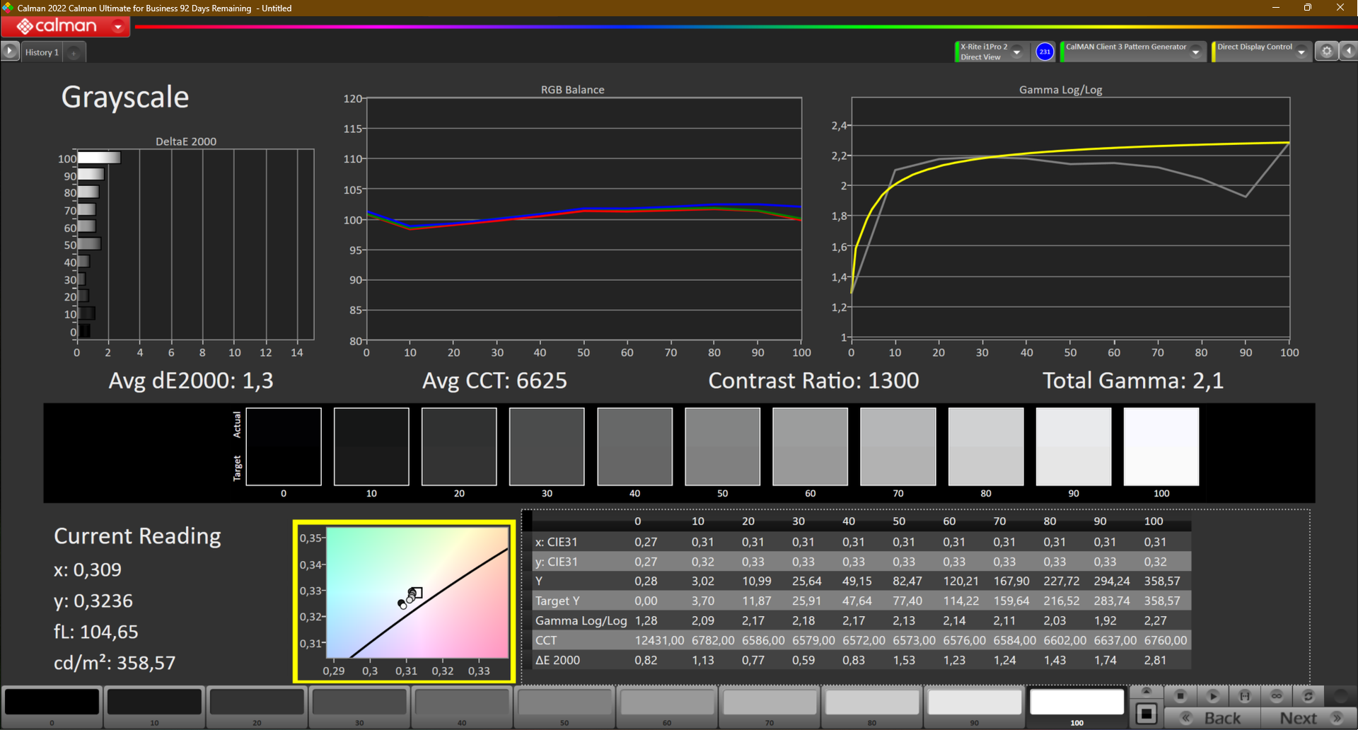 ΔE Greyscale Calman: 1.3 | ∀{0.09-98 Ø5}