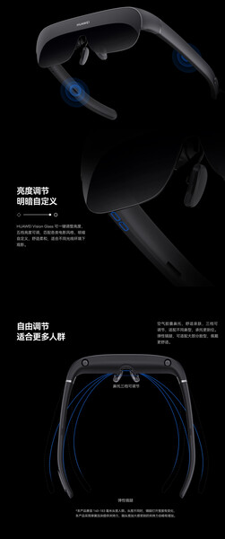 根据华为的产品页面,每块Micro OLED面板的宽度为0.49英寸,输出为1,920 x 1,080像素,像素密度为4,523 SPR。每块面板的输出频率为60赫兹,覆盖90%的DCI-P3色彩空间,以及480尼特。此外,Vision玻璃提供41°视场,53 PPD和63.5毫米(±4毫米)的瞳孔间距离,所有这些都可以创建高达120英寸的投影。