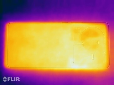 (+) The maximum temperature on the upper side is 34.2 °C / 94 F, compared to the average of 35.2 °C / 95 F, ranging from 21.9 to 247 °C for the class Smartphone.