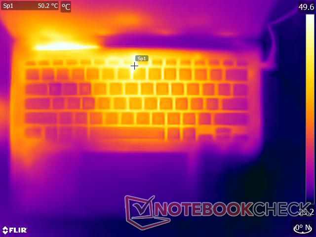(+) The palmrests and touchpad are reaching skin temperature as a maximum (35.4 °C / 95.7 F) and are therefore not hot.