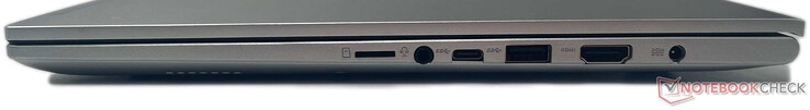在左边,我们有两个USB 2.0 Type-A。在右边,我们可以看到一个USB 3.2 Gen1 Type-A和USB 3.2 Gen1 Type-C端口,一个HDMI 1.4输出,一个3.5毫米组合音频插孔,以及一个microSD卡插槽。