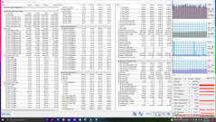 加入FurMark后,由于与现在以900MHz运行的iGPU共享电源,最初的CPU峰值时钟刚刚达到约3.2GHz,然后稳定在约2.8GHz。CPU核心温度可以上升到74℃,平均约为67℃。另一方面,GPU的温度峰值约为72℃,而平均温度接近63℃。