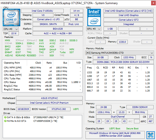 | Asus VivoBook 17 S712FA-DS76 UHD Graphics 620, i7-10510U, Crucial P1 SSD CT1000P1SSD8 | Dell Inspiron 17 3780 Radeon 520, i7-8565U, SK Hynix BC501 NVMe 256 GB | Asus VivoBook 17 M712DA-AU017T Vega 8, R5 3500U, Intel SSD 660p SSDPEKNW512G8 | HP 17-by2437ng UHD Graphics 620, i3-10110U, Toshiba KBG30ZMV256G | Acer Aspire ES1-732-P7YA HD Graphics 505, Pentium N4200, Toshiba MQ01ABD100 | Lenovo IdeaPad 330-17IKB 81DM GeForce MX150, i5-8550U, WDC Blue WD10SPZX-24Z10T0 | |