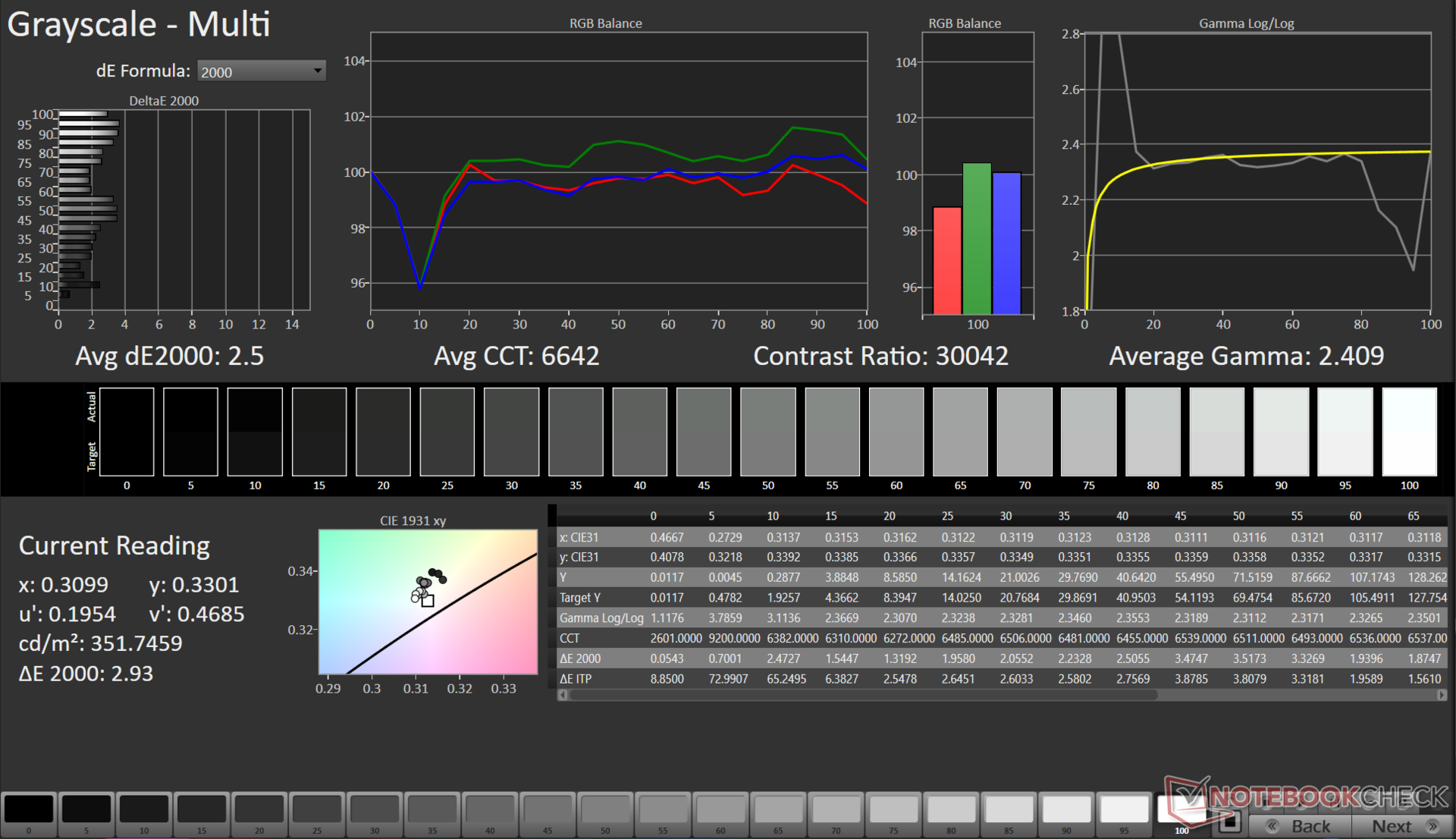 ΔE Greyscale Calman: 2.5 | ∀{0.09-98 Ø5}