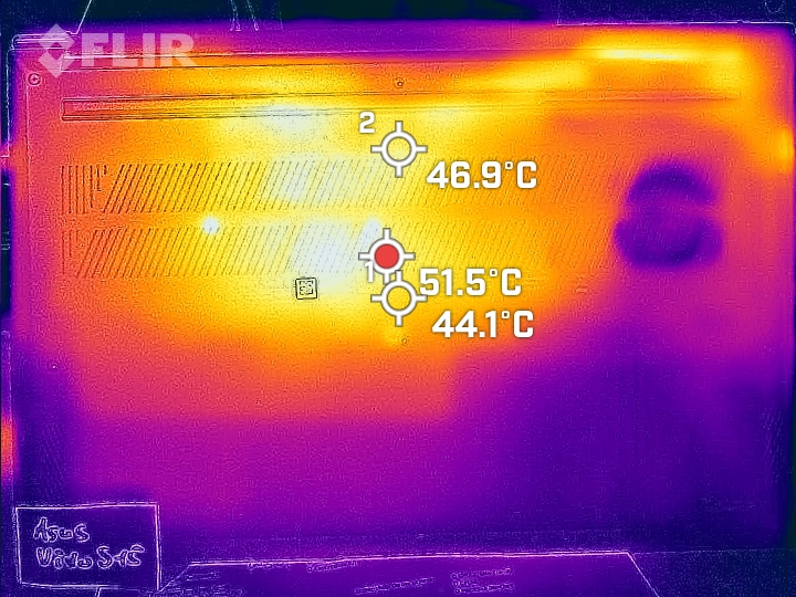 在运行我们测试的游戏时,我们尤其注意到了这一点。触摸板和键盘变热了,但触摸起来一点都不热。然而,在压力测试期间,这些表面确实变热了几度,以至于键盘在使用时可能变得不舒服。