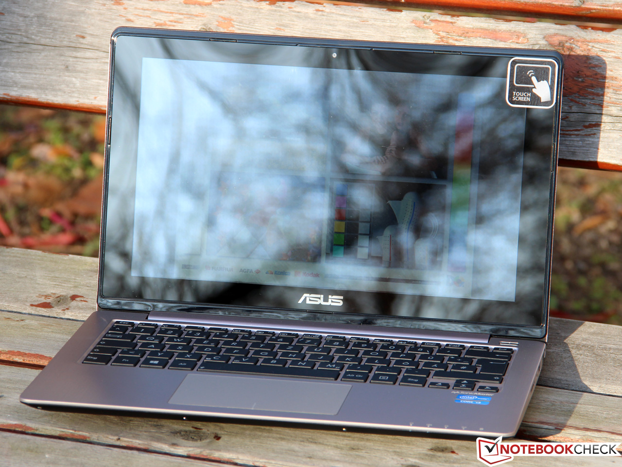 Low brightness (battery use: 164 cd/m²) and a reflective display: outdoor use is just not a forte of the VivoBook. Reflections are visible all the time and make identifying the display content a hassle. Non-glare touchscreens are a rarity - but Asus should have used a panel with a stronger backlight and a brightness of at least 250 cd/m².