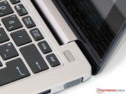Impressive: unlike other notebooks in this price range, the chassis of the VivoBook S200E is not made from simple plastic, but to a large extent from high quality, brushed aluminum. The metal is not only used for the back of the display lid, but also the top of the base unit. That particular piece is milled from solid aluminum - similar to the (much more expensive) Zenbook series. Only the bottom cover is made from plastic.