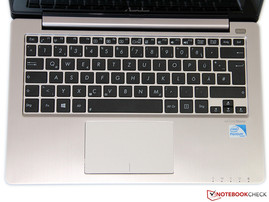 The touchpad, which measures 6 x 10.5 centimeters (2.36 x 4.13 inches), doesn't just look like the one Asus equips the premium Zenbook UX51VZ with - it also features the same outstanding usability. The low friction, velvety surface allows the fingers to glide smoothly and with above-average precision. Multitouch gestures, like pinch-zoom or scrolling with two fingers, work without a hitch.