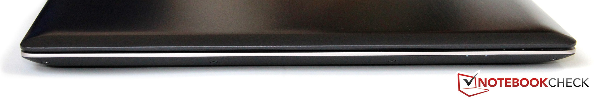 The net result is that the entire notebook is remarkably rigid and resilient. The VivoBook weighs in at 1.4 kilogram (3.09 pounds), is only 2.2 centimeter (0.87 inches) thick, torsionally extremely rigid and resists pressure well - some Ultrabooks don't score nearly as well. The build quality is also very high: the transition between the different sections is without flaws, the corners are nicely rounded, and the gaps are even and unobtrusive.