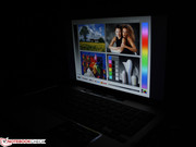 The base of the keyboard is very firm, the clear pressure point is good and the comparatively large key travel outshines most consumer notebook keyboards. All in all we get very good feedback during typing. If the keys had a conical curvature it would be perfect. The stroke is firm but not too hard and the produced noise is quiet even during heavy typing.