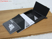 The VivoTab is also available without the keyboard dock, the price is 800 Euros (~$1068) in this case. As accessory you get a stylus pen (Wacom, passive, without battery) with five replacement tips in a small box. In addition there is a USB 2.0 dongle for the docking port of the tablet and a cover that can also be used as a tablet stand. The keyboard dock does not fit into this cover.