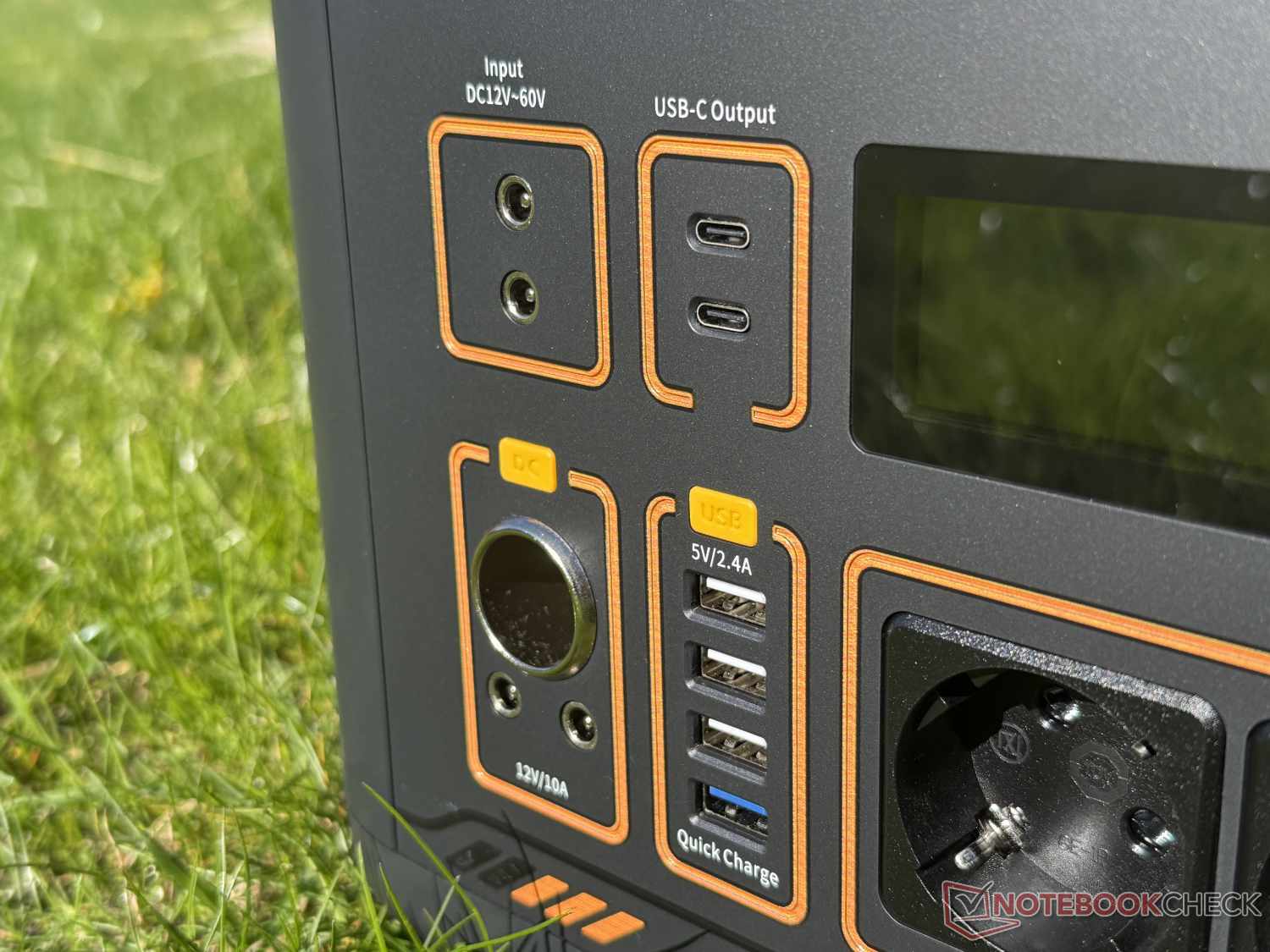 一个实用的特点是端口选择多。不过,一旦电站空了,它的充电功能就非常有限。连接太阳能电池板或通过车载插座为汽车充电的最大直流输入功率为 400 瓦,这在同类产品中是可以接受的。不过,对于 1.5 千瓦时的车型来说,通过交流电网充电的最大功率只有 400 瓦,充电速度非常慢。这意味着充电过程需要花费不必要的时间。这里需要耐心。