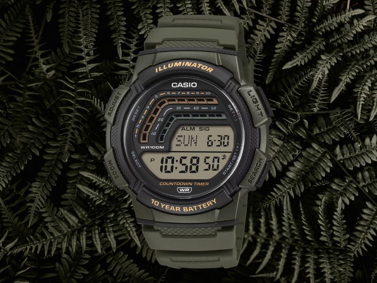 卡西欧 WS-1800 是一款带有标准(浅色背景,深色数字)显示屏的数字手表。表面上部有两个图形段,显示当前的倒计时器。其他工具包括秒表、每日闹钟和每小时时间信号。下部较大的屏幕显示 12 或 24 小时格式的时间、日期和星期。据该公司称,这款手表每月的精确度应保持在 30 秒以内,日历全自动显示至 2099 年。它支持 29 个世界时区,LED 背光可帮助您在光线不足时读取时间。
