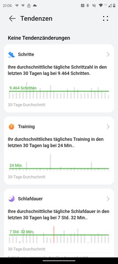 与普通Watch 4 Pro 相比,设置过程中没有任何变化。不过,随着软件升级到 HarmonyOS 4.2,华为健康应用程序的功能范围有所扩大。其中一个例子就是趋势。