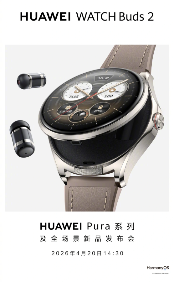 这款新的可穿戴设备将作为华为 Watch Buds 2 发布,并将于 4 月 20 日与其他产品一起发布,包括 华为 Pura X Max.华为甚至还分享了一张海报,揭示了新款 Watch Buds 2 的外观。