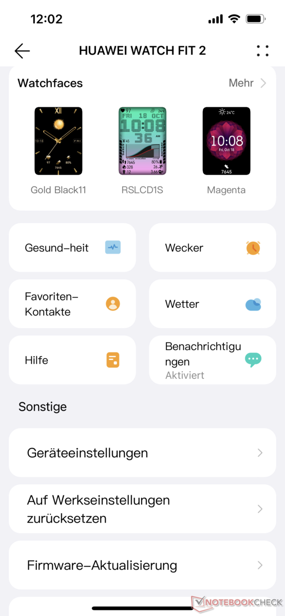 这款智能手表也会通知传入的智能手机通知。在应用程序中,这些通知可以针对不同的区域单独打开或关闭(在iOS下是信息、WhatsApp、Facebook、Twitter、Messenger、Gmail、其他)。邮件、短信等的第一行可以在手腕上阅读。在测试中,用iPhone进行传输也很顺利,读取状态也能正确传输。与Android 智能手机结合,还可以使用预定义的快速回复。遗憾的是,NFC无法使用。