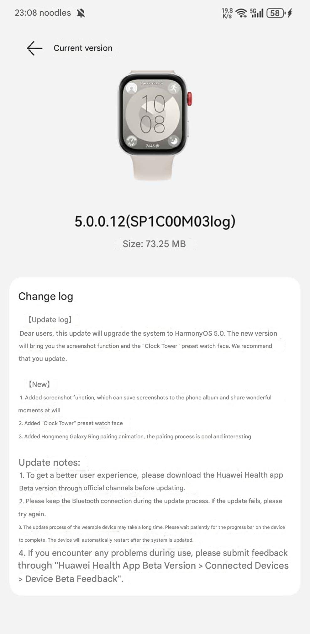 测试版 5.0.0.12(SP1C00M03log) 大小为 73.25MB,为 Watch Fit 3 带来了多项新功能。其中包括截屏功能,可保存到手机相册中。该工具最近还 开始在全球范围内向 Watch Ultimate 用户推广。.还有一个名为 "钟楼 "的新表盘和Galaxy Ring 配对动画。此外,慧聪新闻中心报道称,微信手表应用已经推出,可以阅读消息并用建议的文字或语音备注进行回复。