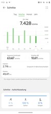该程序不仅显示步数,还显示消耗的卡路里和行走的距离。步数还可细分为跑步、步行和(爬楼梯)。不过,在测试中,Watch Fit 3 经常无法识别步数。另一方面,这款智能手表能在骑行训练中计算步数,但华为在这方面仍需改进。