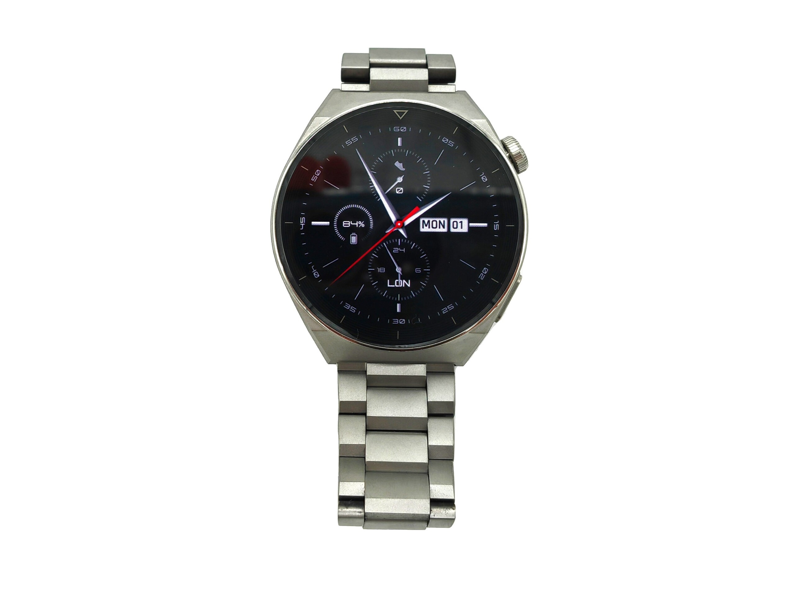 华为在Watch GT 3 Pro上全力以赴。材料感觉和做工都很有说服力。这款手表看起来和感觉都很高质。1.43英寸的显示屏由蓝宝石玻璃覆盖,其余部分由磨砂钛制成,表面为哑光。手表的表壳和表带的颜色完全相同。链接式表带带有独立的链接,因此表带的周长可以根据需要进行调整。由于元件上的小吊耳,这种调整无需工具即可成功。整个表带也可以不使用工具进行更换。连接方式符合22毫米(约0.9英寸)的标准,这意味着市场上有无数可更换的表带,不管是哪个制造商。