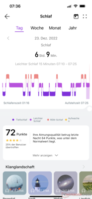 那些晚上也戴着智能手表的人可以从睡眠跟踪的华为TrueSleep 3.0中受益。手表本身提供基本信息,如睡眠时间。详细的信息,如睡眠阶段,可在应用程序中获得。